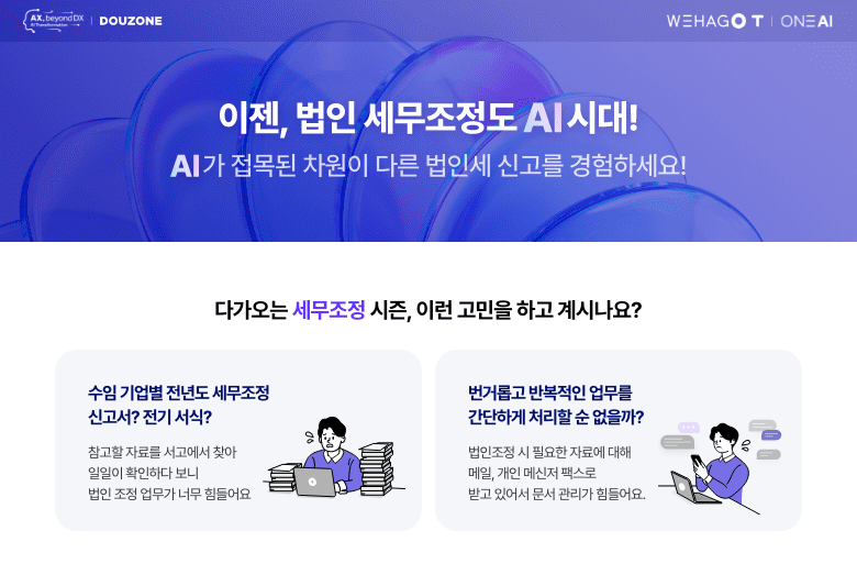 민원서류발급 / 세법도우미 / AI신고도움 / AI세무조정 / 수임기업업무관리