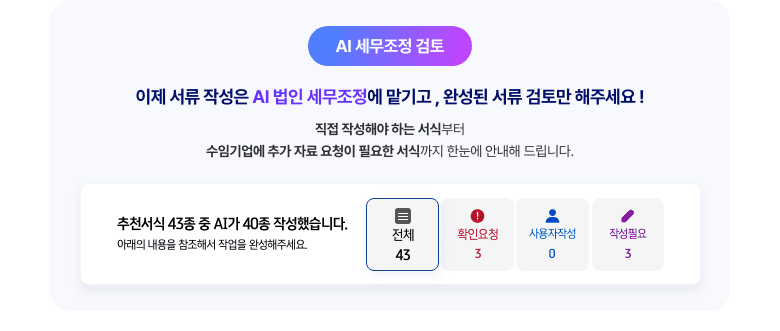 이제 AI가 할일을 미리 준비해 업무시간은 줄고, 신고 기간은 여유로워 집니다.