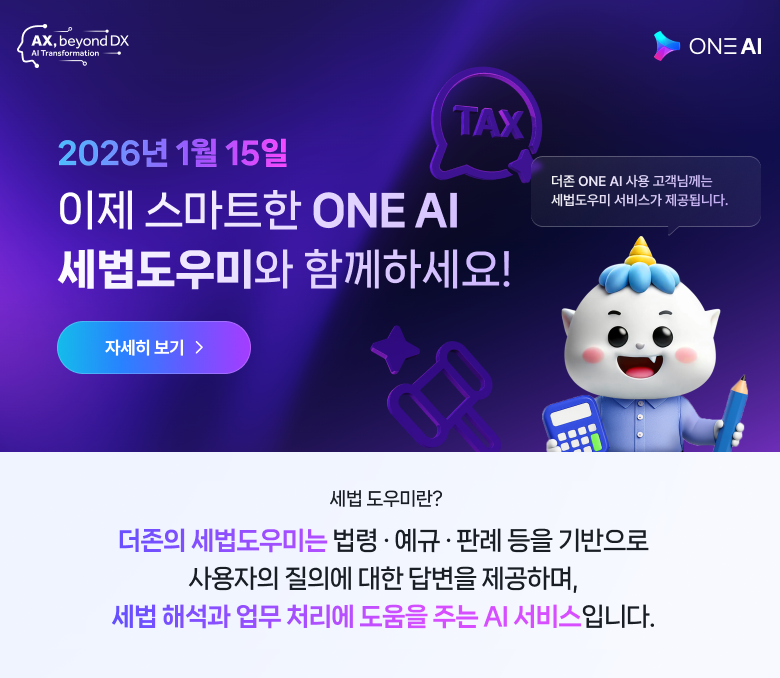 ONE AI는 단순히 업무의 시간과 비용을 절약하는 도구를 넘어서 기업의 업무 환경에 새로운 가치를 만들어나가고 있습니다. 기업용 솔루션에 최적화된 AI 문서 처리 및 기업 데이터 보안 성능으로 향상된 AX 경험을 제공할 수 있습니다.